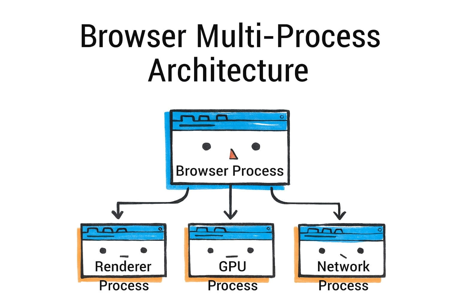 在 Chromium(Chrome、Edge、Brave 等)中,有一个中心的浏览器进程。这个浏览器进程负责 UI(地址栏、书签、菜单等整个浏览器外壳)和协调高级任务,如资源加载和导航。当你打开 Chrome 并在操作系统任务管理器中看到一个条目时,那就是浏览器进程。它也是生成其他进程的父进程。