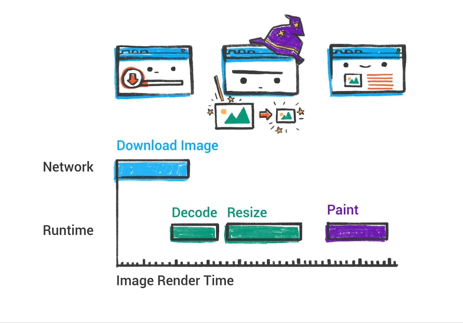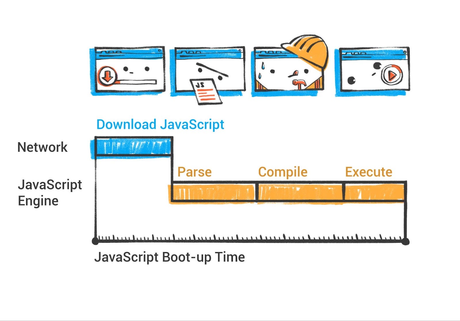 优化网络使用:更少的往返和更小的文件 = 更快的开始渲染。浏览器可以做很多(HTTP/2、缓存、预测性加载),但你仍应该利用资源提示和高效缓存等技术。网络栈是高性能的,但延迟总是性能杀手。