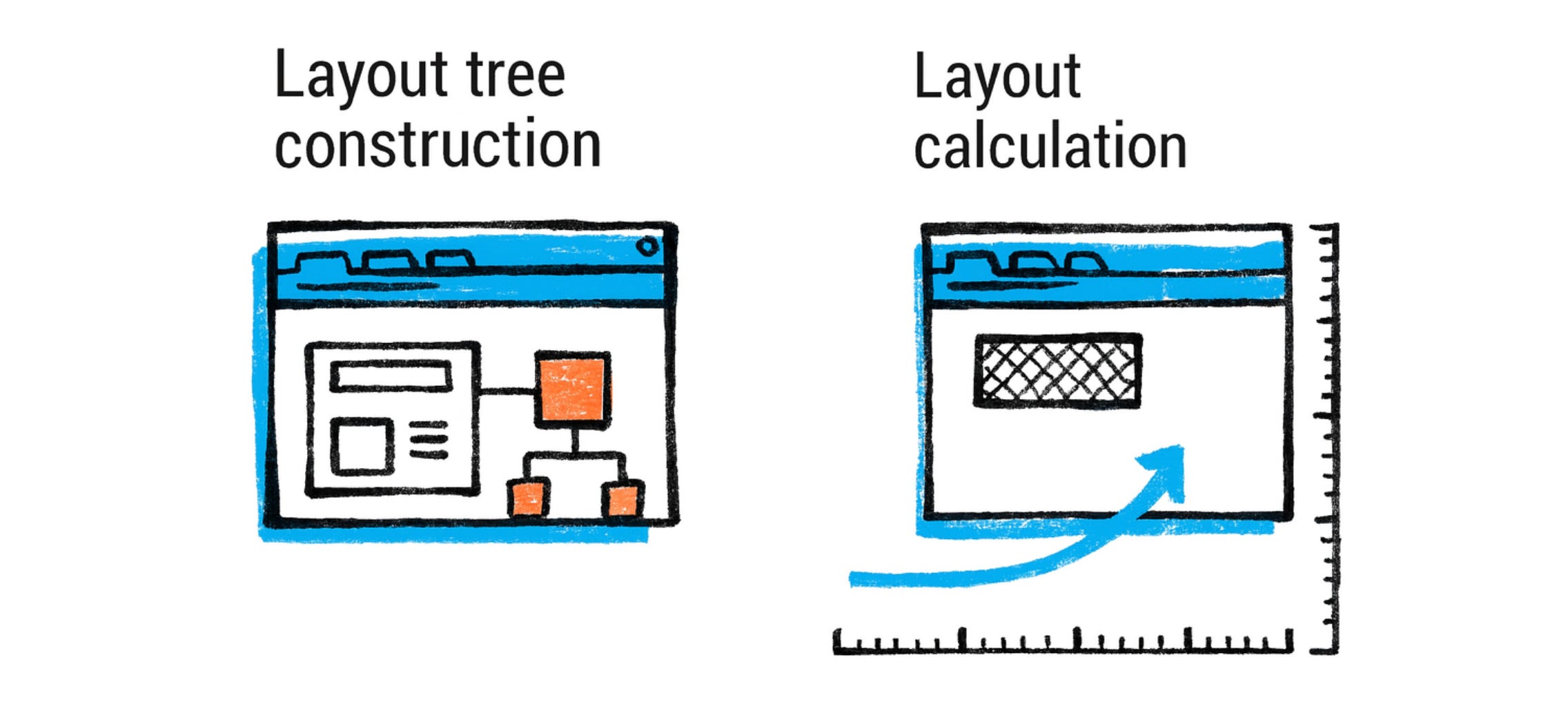 为效率构建你的 HTML/CSS:结构良好的 DOM 和精简的 CSS(避免非常深的树或过于复杂的选择器)可以帮助解析和样式系统。理解 CSS 和 DOM 构建计算样式,然后布局计算几何形状——重度 DOM 操作或样式更改可能触发这些重新计算。